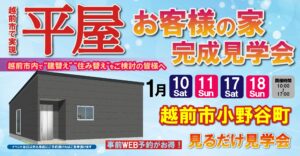 【平屋】1月10日(土)~18日(日)に越前市小野谷町にて完成見学会を開催いたします!