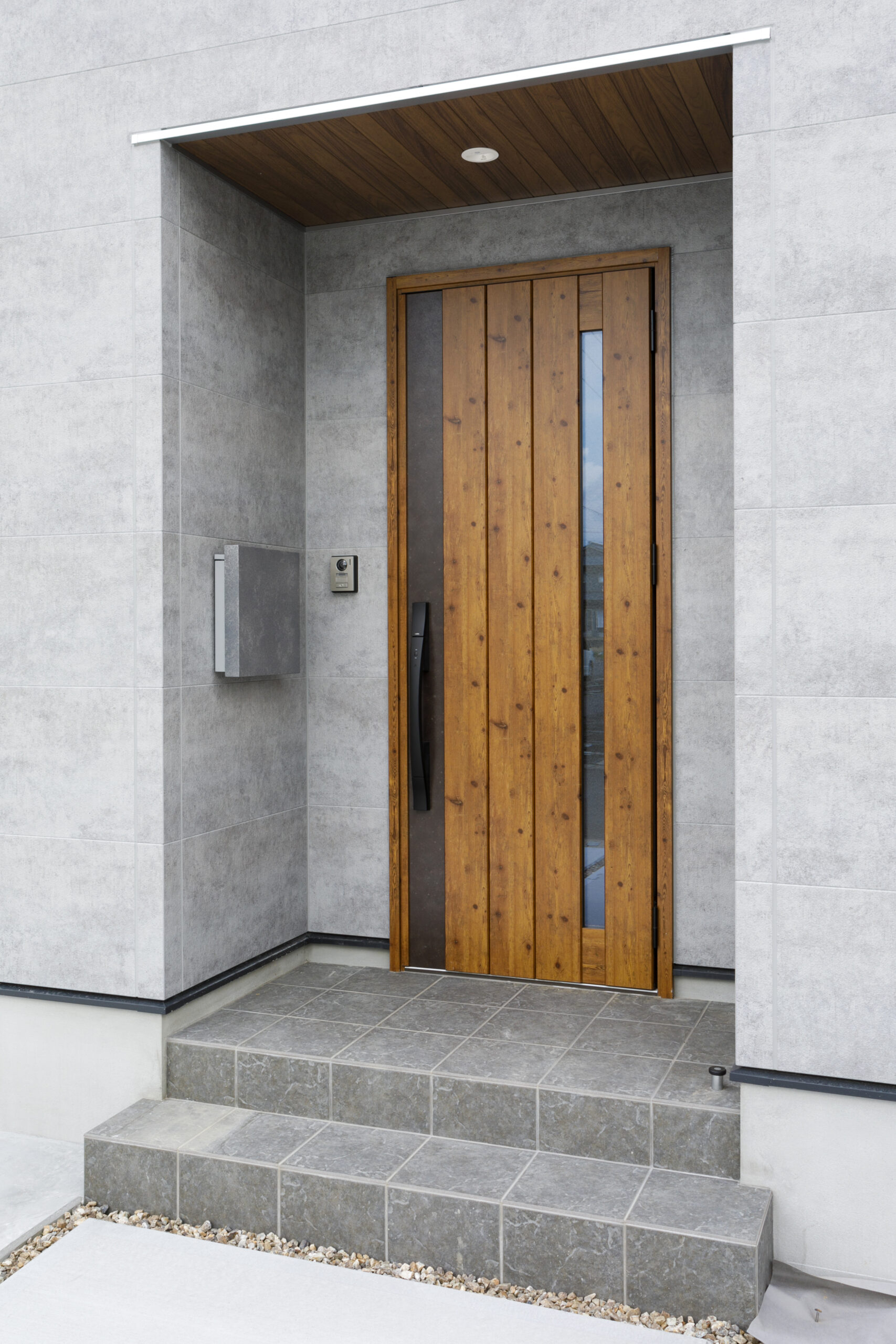 軒天はドアにあわせて木目調をチョイス。