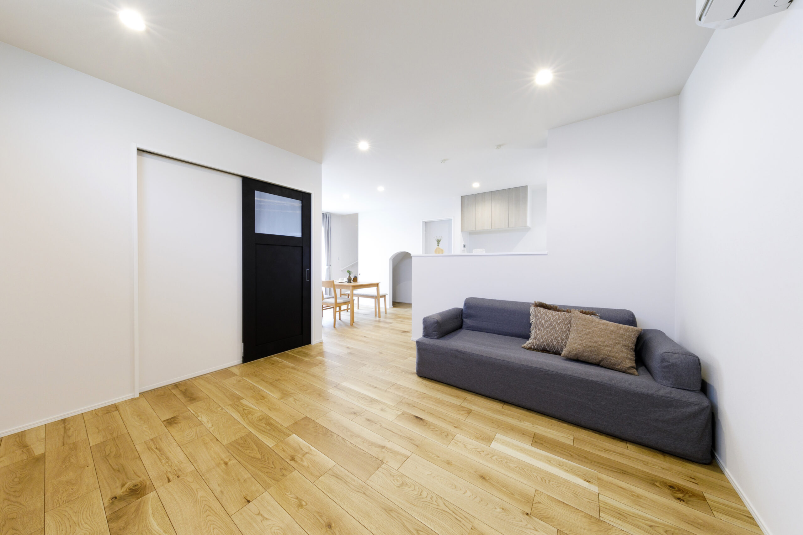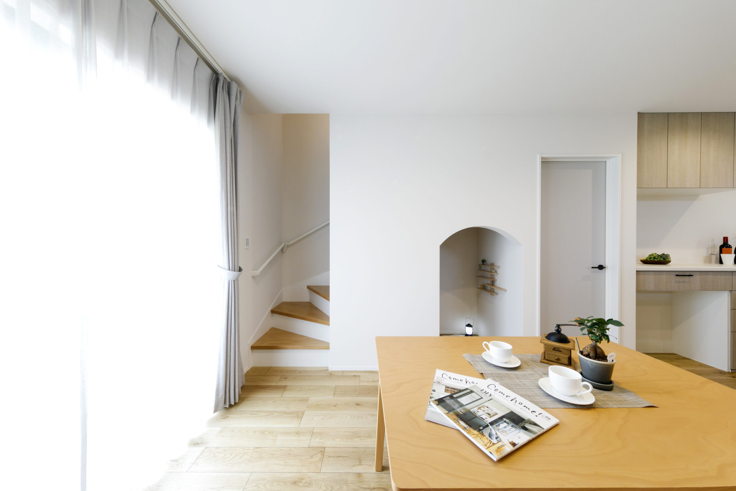 木目がはっきりとしたフローリングでナチュラルテイストの内装。
