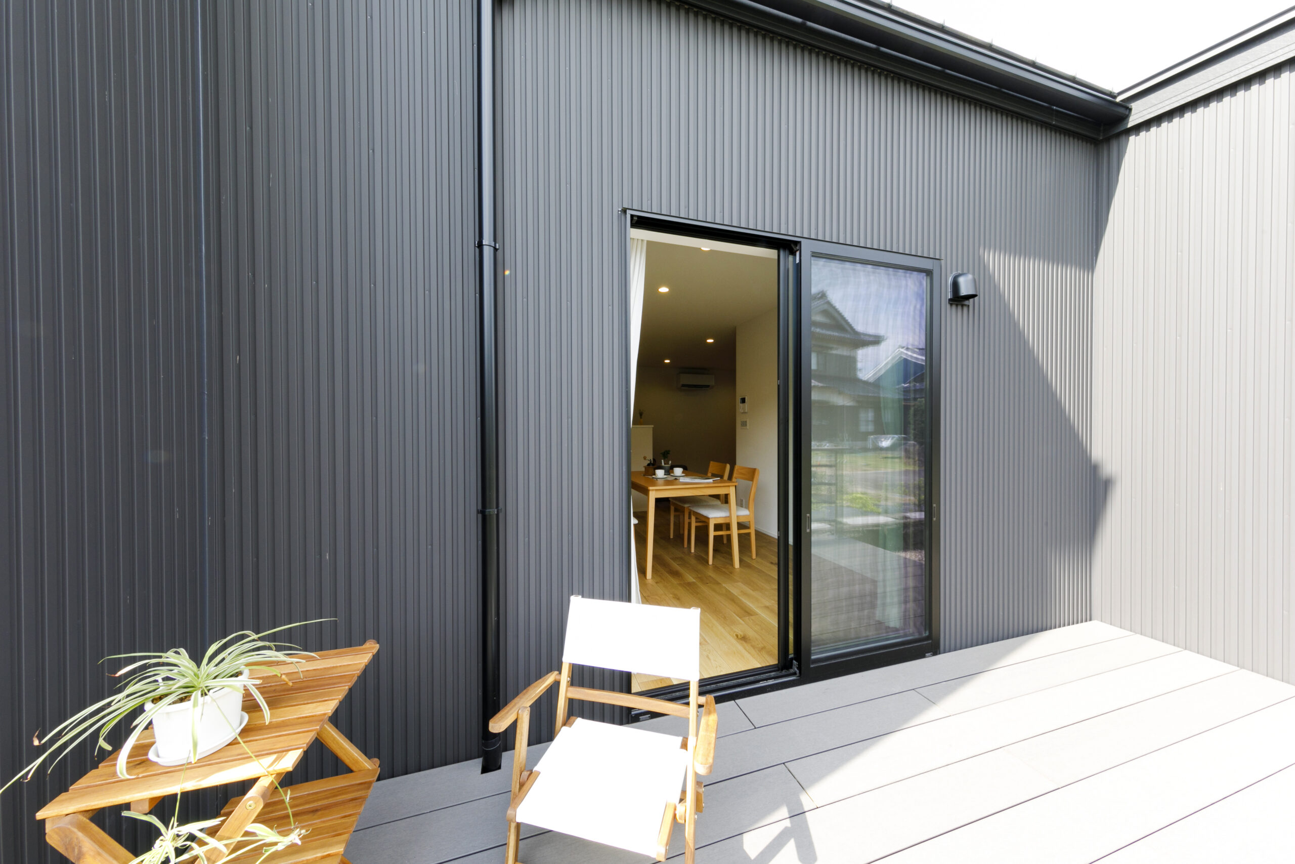 ウッドデッキはリビングから段差無く出入りできるので、外でもくつろげる素敵なリビングになりました♪